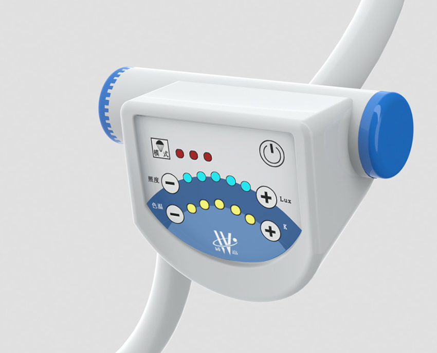 無(wú)影燈控制器界面設(shè)計(jì)不拘泥于傳統(tǒng)手術(shù)無(wú)影燈操作界面設(shè)計(jì),打破傳統(tǒng)嚴(yán)肅、呆板的平鋪式設(shè)計(jì),采用人工工程學(xué)原理結(jié)醫(yī)護(hù)人員的使用操作習(xí)慣改善而來(lái),整個(gè)設(shè)計(jì)合理、合規(guī),界面設(shè)計(jì)活潑,富有朝氣。