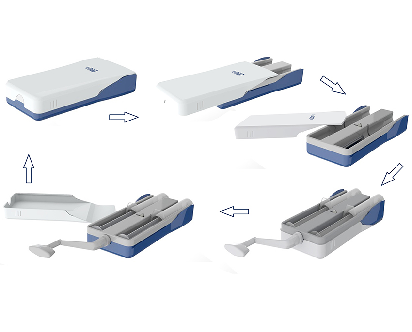 助推器設(shè)計(jì)及其包裝設(shè)計(jì)方案,針對(duì)客戶提出粘度較大的藥液,注射時(shí)需使用較大的推力的痛點(diǎn),我們經(jīng)過(guò)周密的客戶使用習(xí)慣調(diào)研結(jié)合醫(yī)護(hù)人員的使用習(xí)慣,設(shè)計(jì)的助推器,更易于用發(fā)力、便于醫(yī)護(hù)人員持針以及避免推桿的誤操作,也防止了使用之前活塞的移動(dòng)。