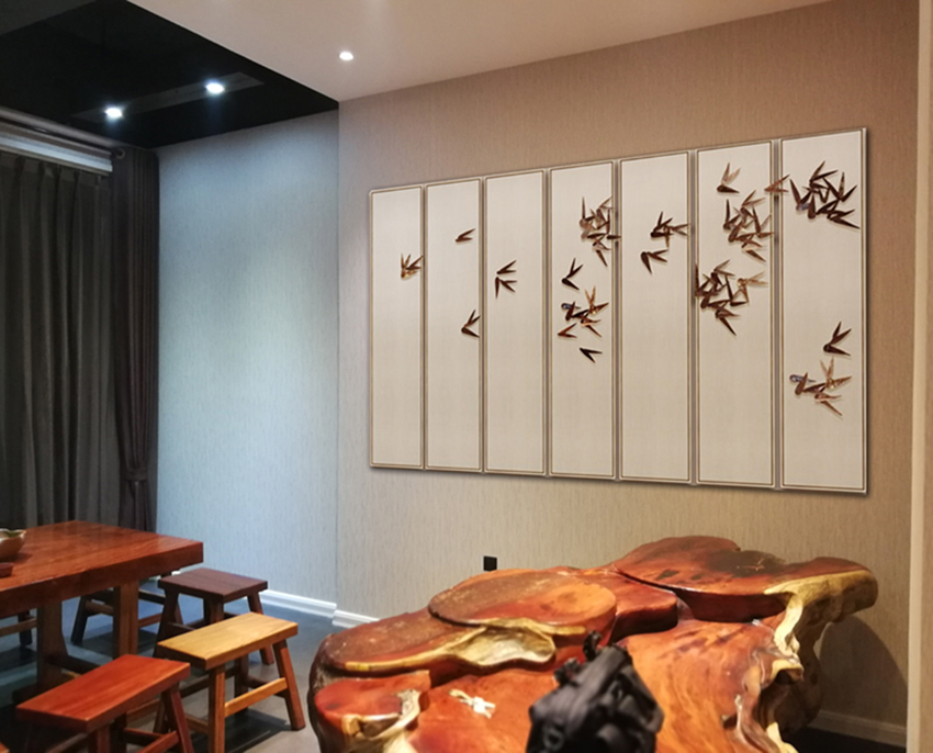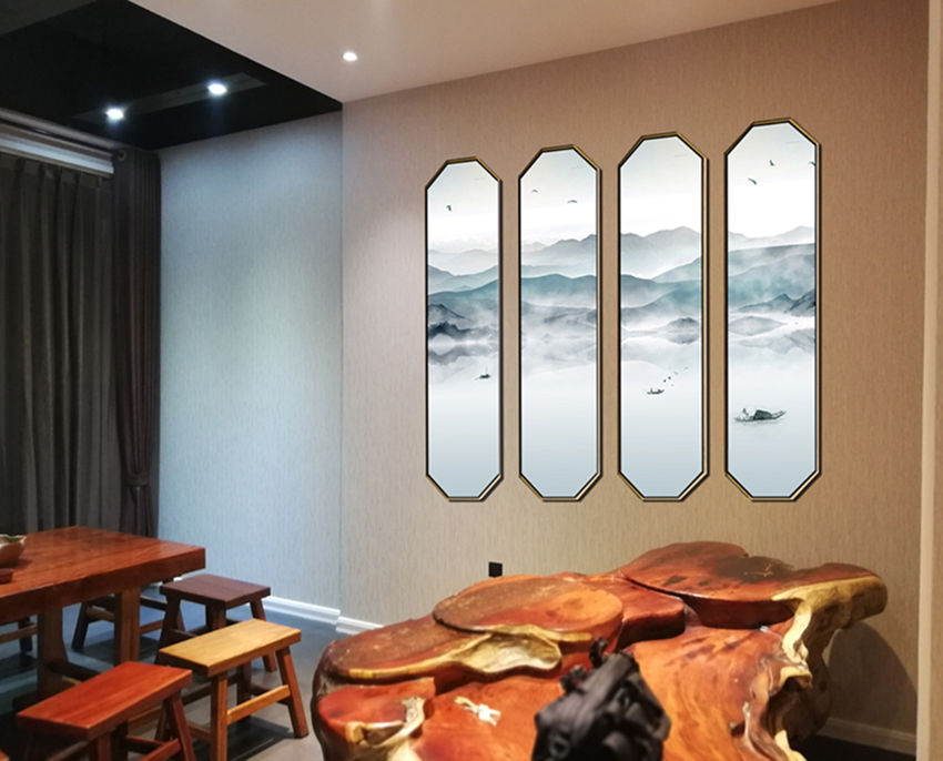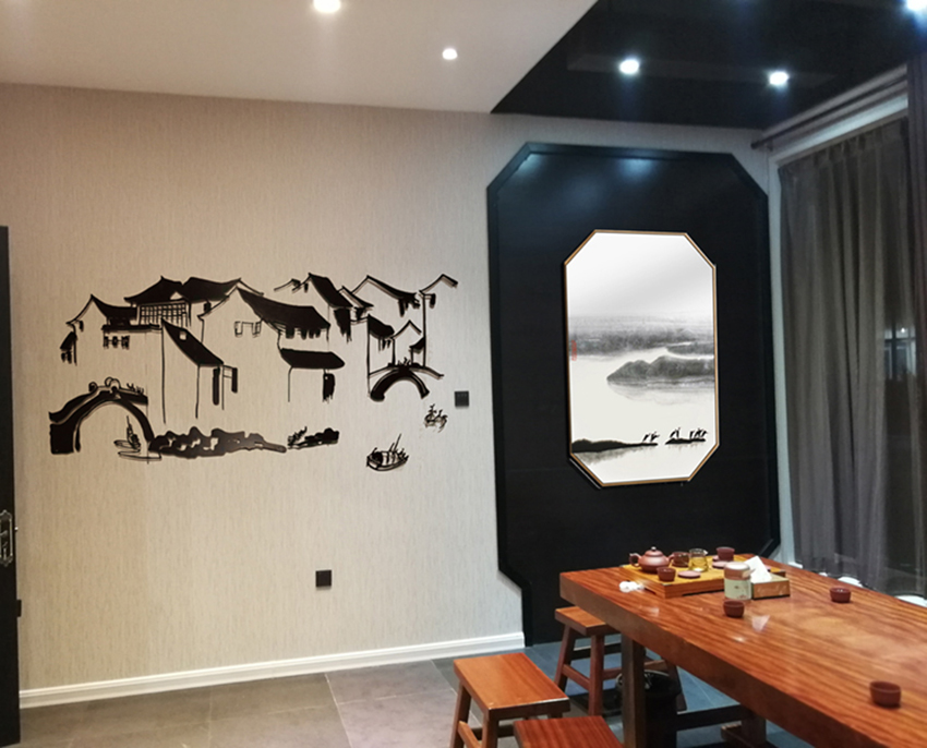 本次空間設計以中國風為主,墻面搭配中國水墨畫,以白色調為主,體現(xiàn)其高端典雅的風格