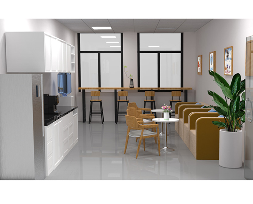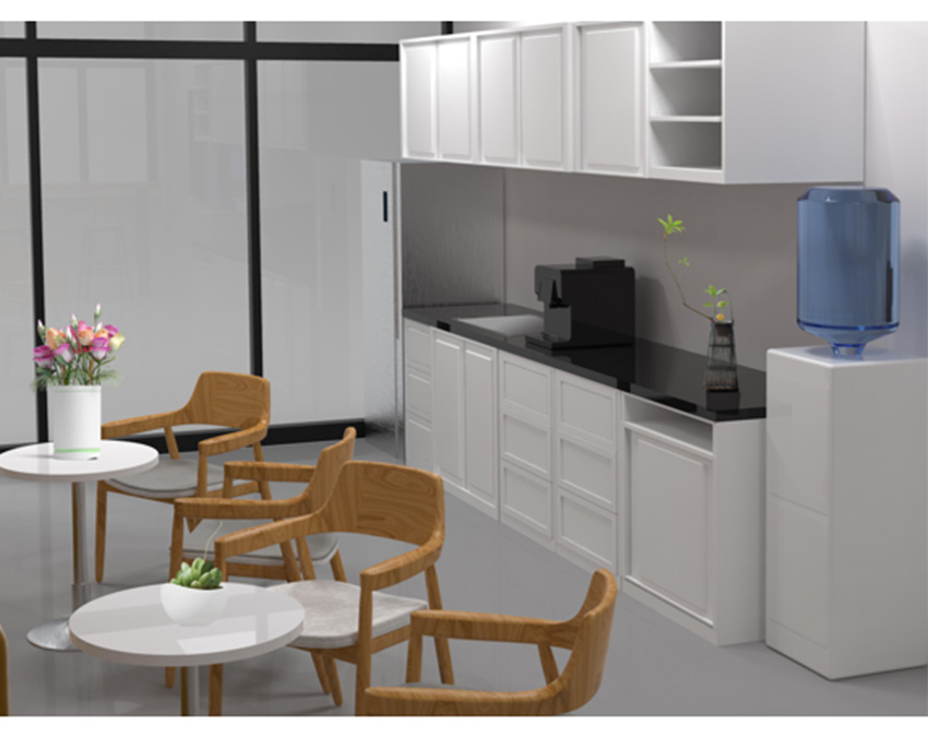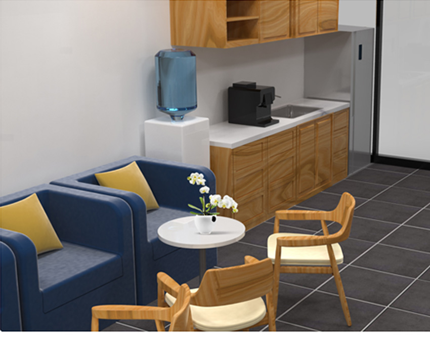辦公室茶水間設(shè)計較簡潔走商務(wù)風(fēng)路線,打造令人舒適自然的空間環(huán)境。